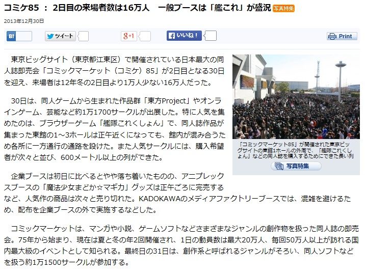 【C85・冬コミ】2日目の来場者数は16万人!昨年から1万人減少