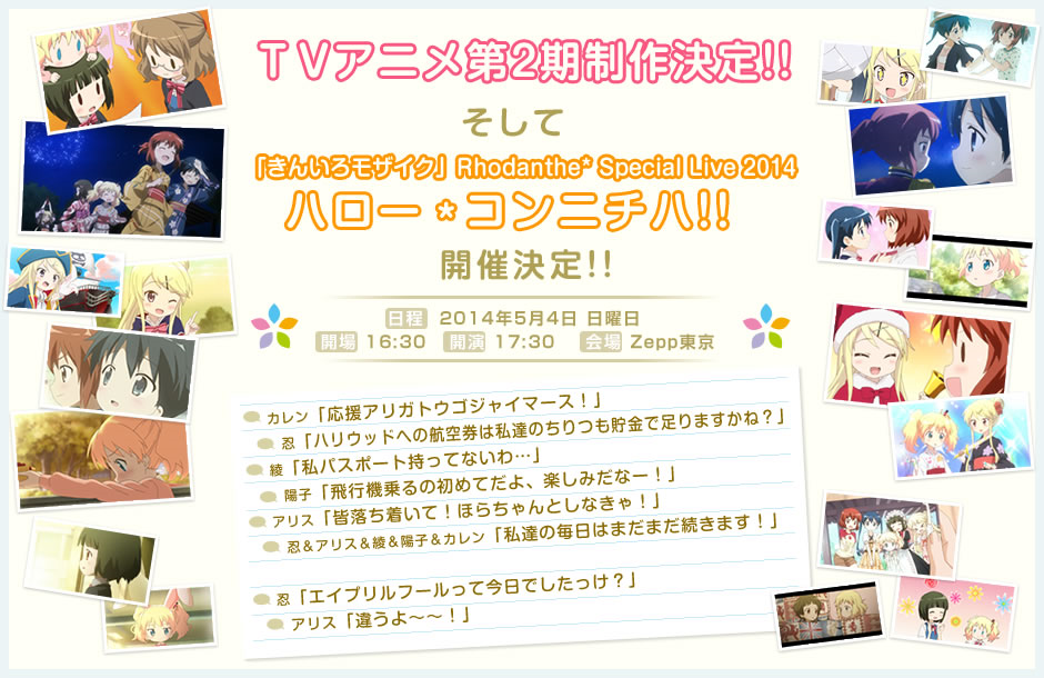『きんいろモザイク』アニメ第2期制作決定!! アニメ公式サイトでは声優陣のサイン&メッセージが公開!