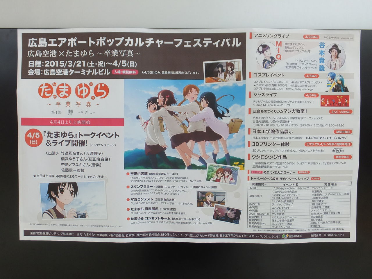 先日4月5日(日)広島空港での開催イベント「広島空港ジャック! たまゆら~卒業写真~上映記念トーク&ライブ」と「広島バルト 11」での舞台挨拶に参加して来ました!!