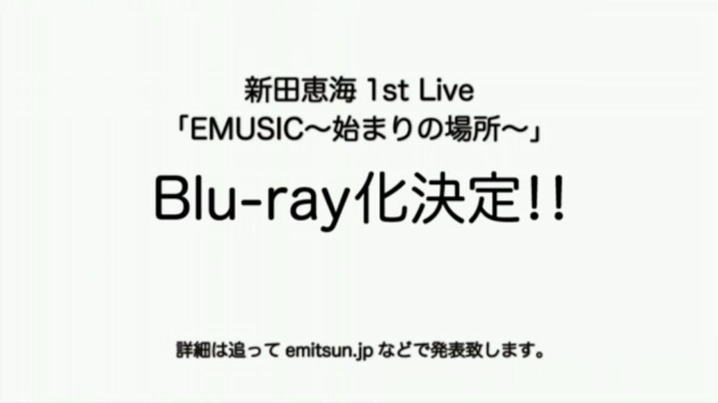 本日12/12(土)放送された、【ニコ生】新田恵海1st Live「EMUSIC〜始まりの場所〜」スペシャルダイジェスト映像にてライブBlu-ray化される事が決定しました。